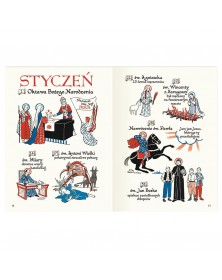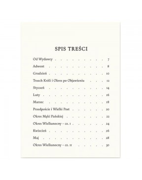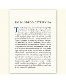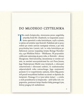 Ta mała książeczka, stworzona przez angielską artystkę Enid M. Chadwick, to wspaniała rysunkowa opowieść o roku kościelnym, czyli o rytmie, w jakim od wieków żyje Kościół. Podobnie jak w przyrodzie po zimie zawsze następuje wiosna, a po niej przychodzą lato i jesień, tak i w roku kościelnym po Adwencie zawsze wypadają święta Bożego Narodzenia, a po Wielkim Poście – Wielkanoc. W przyrodzie cyklicznie zmieniają się pory roku, w Kościele – okresy liturgiczne. Rok kościelny, niezmienny w swoim rytmie, ze swoimi uroczystościami ku czci Pana Jezusa, Jego Najświętszej Matki oraz świętych, z okresami umartwienia i okresami radości, to nadnaturalny odpowiednik roku naturalnego. Jego znajomość pomoże Ci w wypełnieniu zadania, które Bóg postawił przed wszystkimi ludźmi na ziemi: w dążeniu do świętości. Pomogą Ci w tym także święci – a wielu z nich przedstawia ta książeczka – jeśli tylko ich o to poprosisz, ponieważ święci bardzo lubią pomagać tym, którzy pragną ich naśladować. - tekst Od Wydawcy z wydania kieszonkowego
